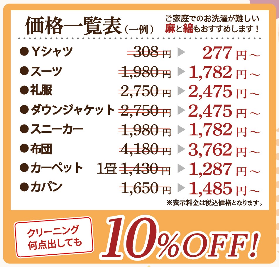 大変ご好評につき、クリーニング全品10%OFFの期間が延長となりました!