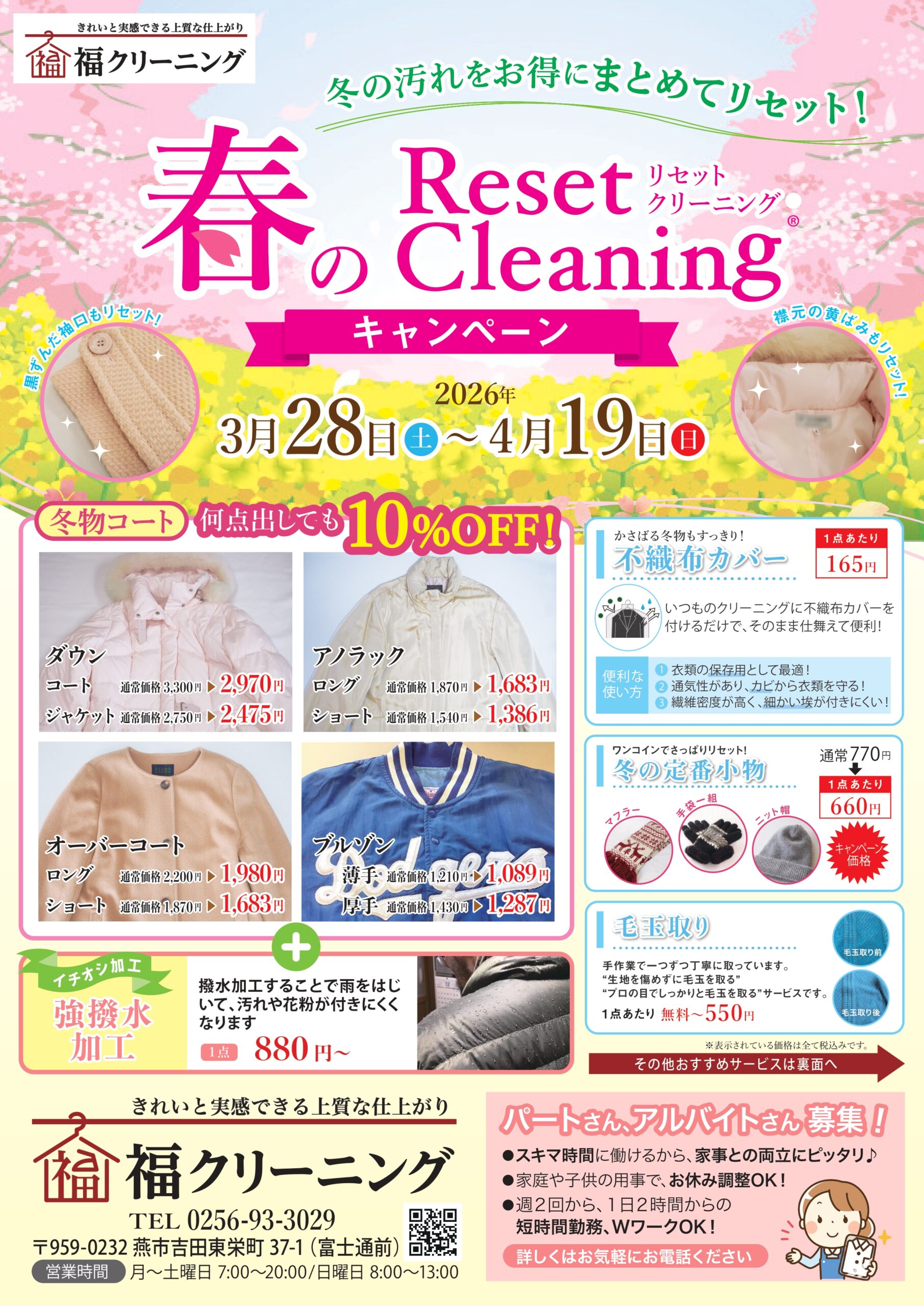 福クリーニングでは、冬→春にかけての衣替えに合わせて『春のリセットクリーニングキャンペーン』を開催いたします!